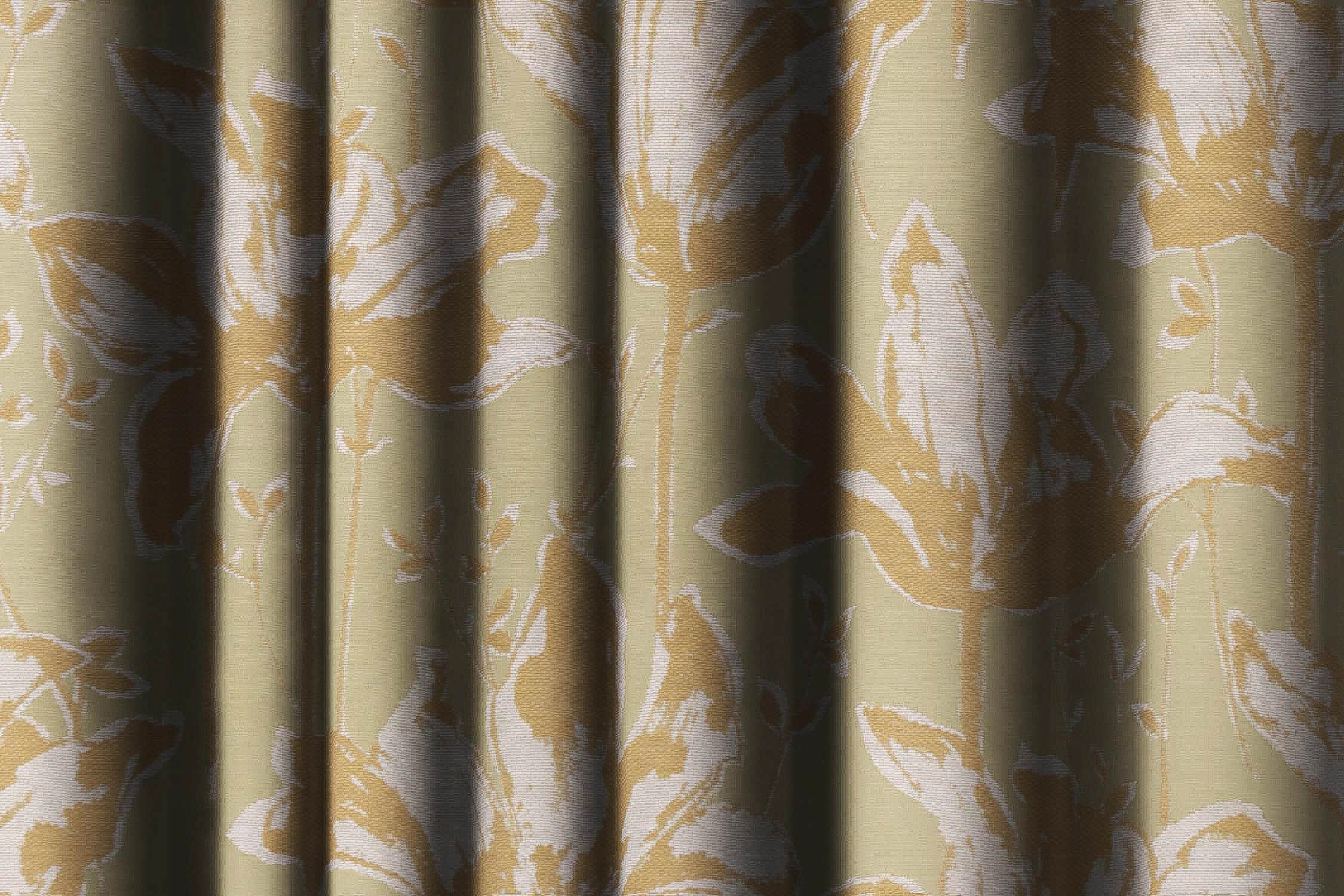 Beige and White Floral Curtain Fabric
