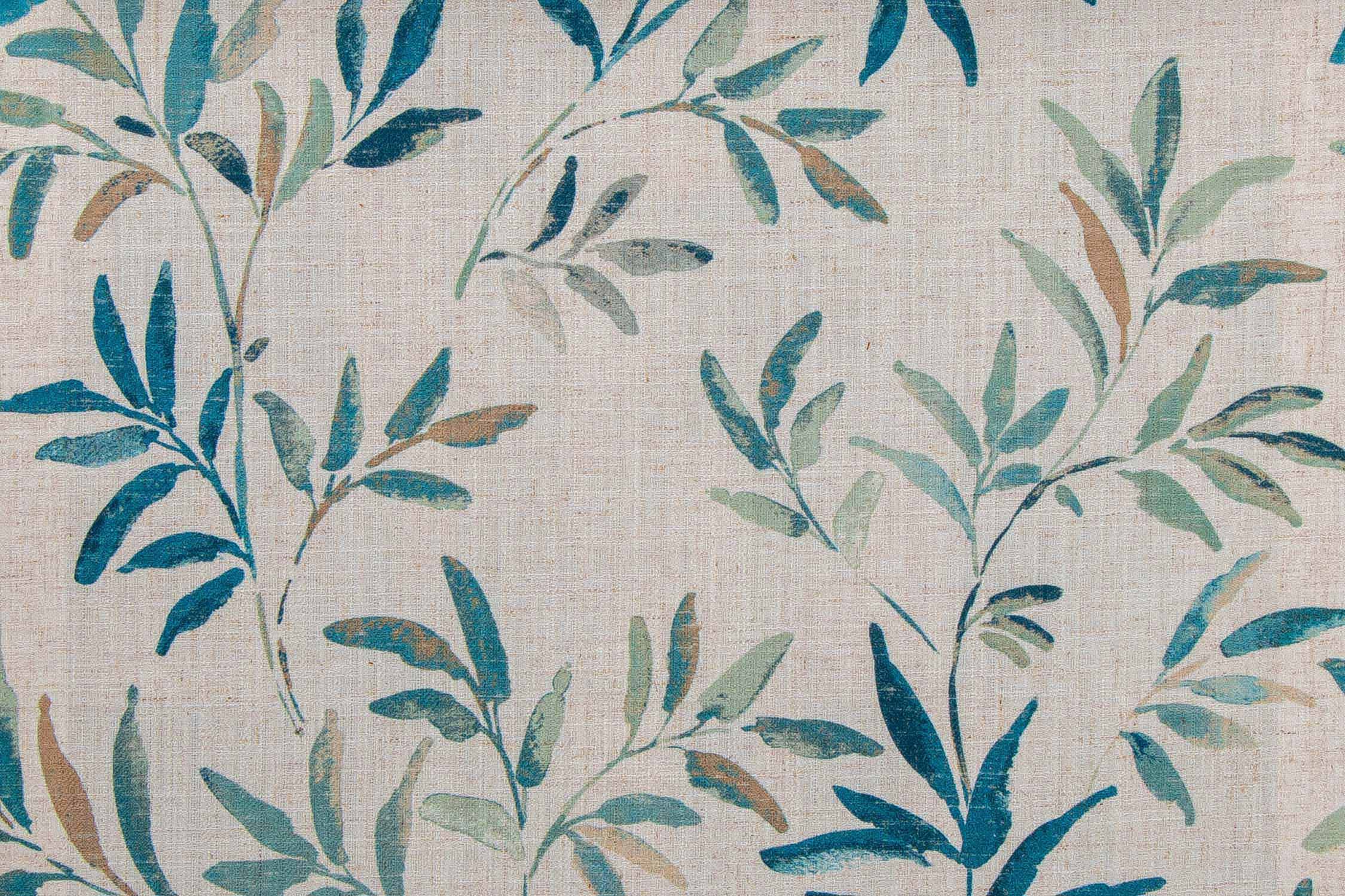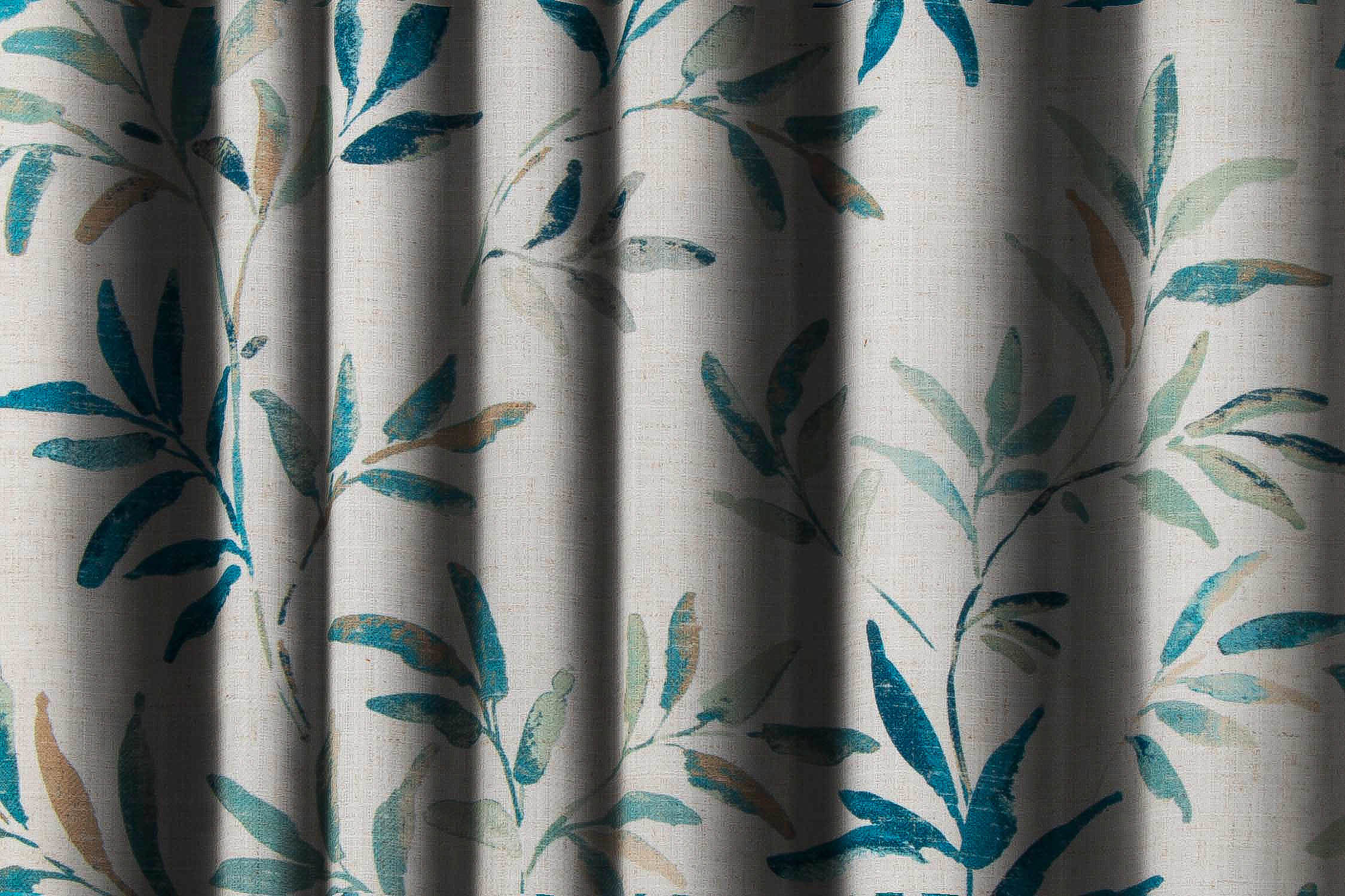 Blue Watercolor Leaf Print Curtain Fabric