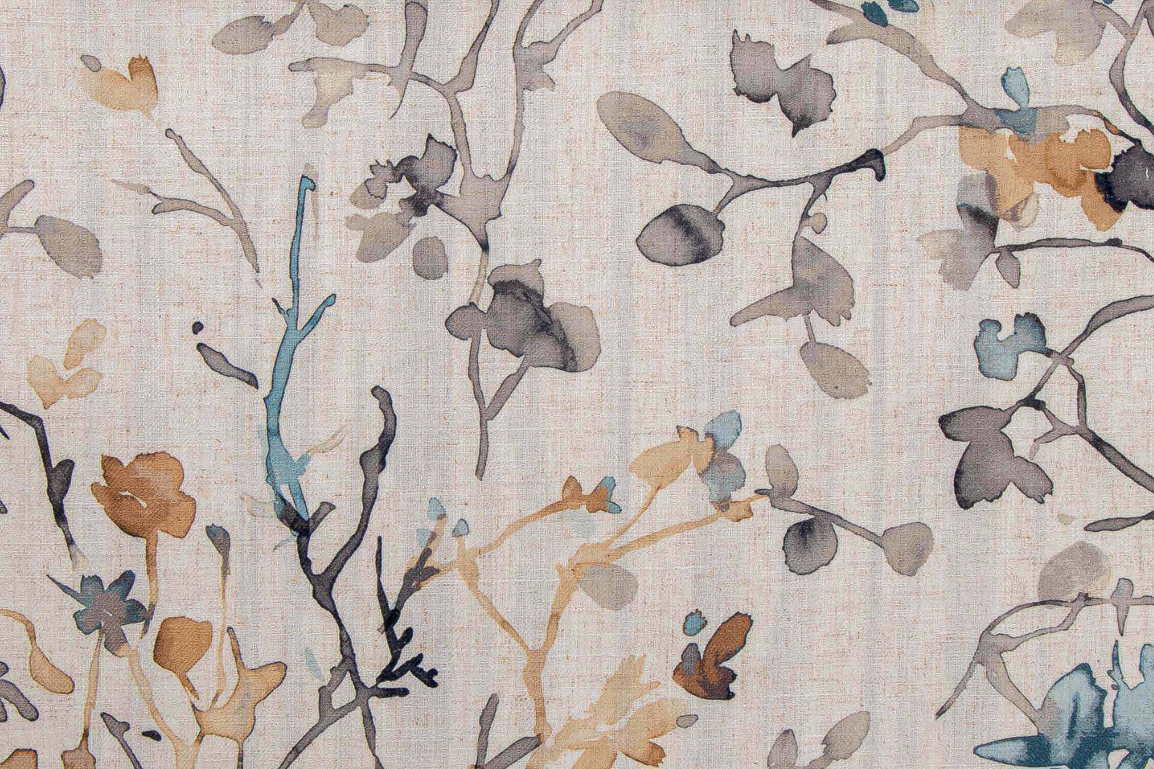 Brown, Blue & Grey Watercolor Tree Print Abstract Curtain Fabric