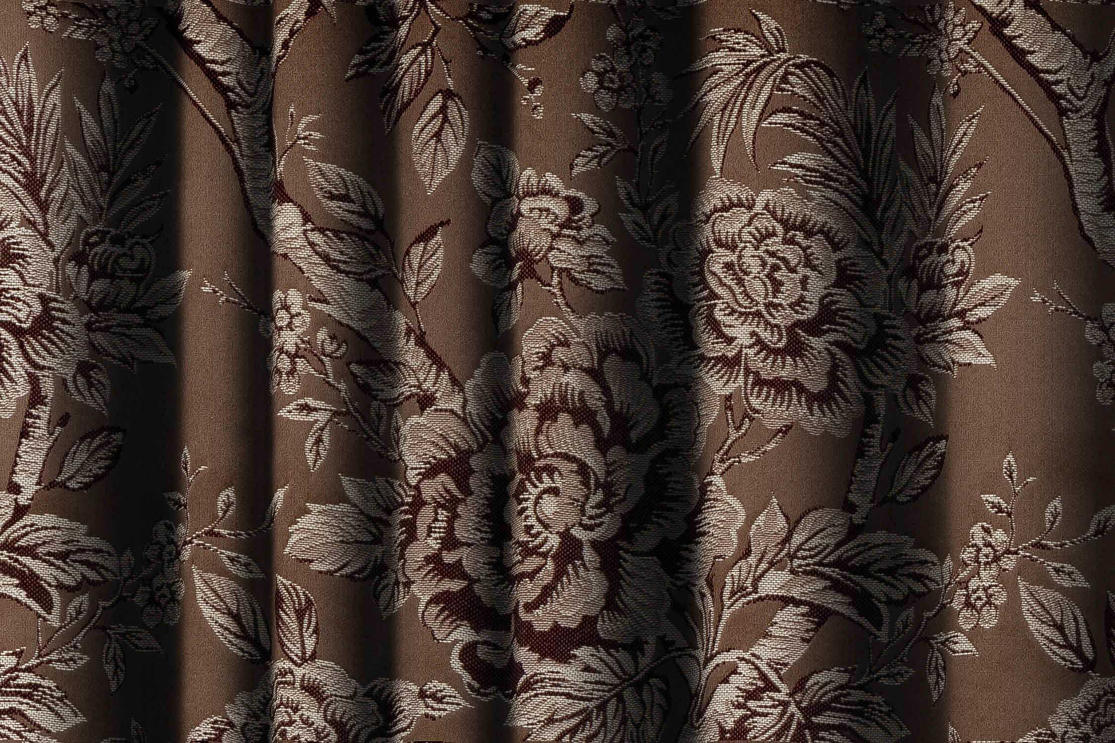 Brunette Brown and Dark Brown Floral Print Curtain Fabric