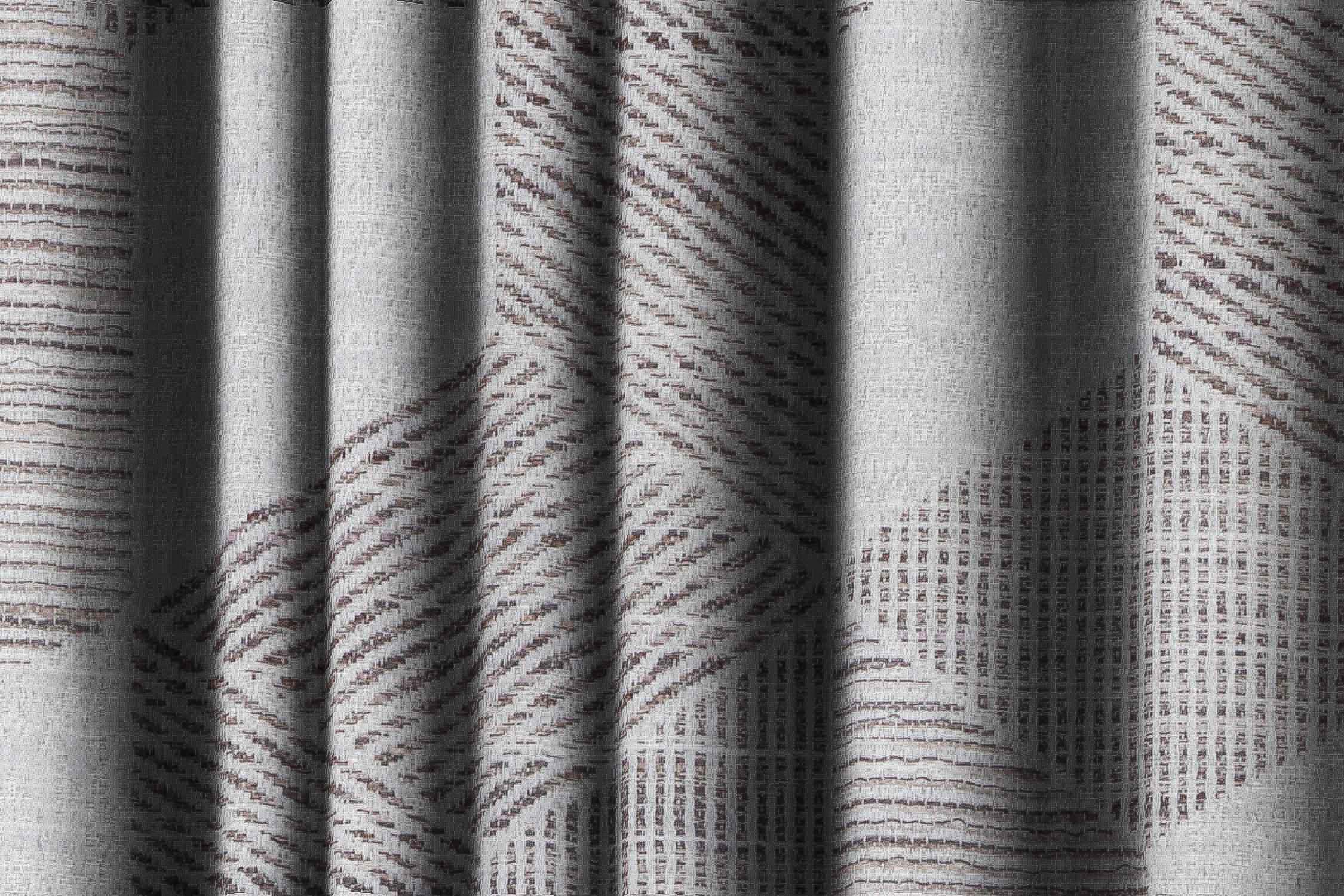 Dull Brown & Light Ash 3D Effect Polygon Line Pattern Abstact Curtain Fabric