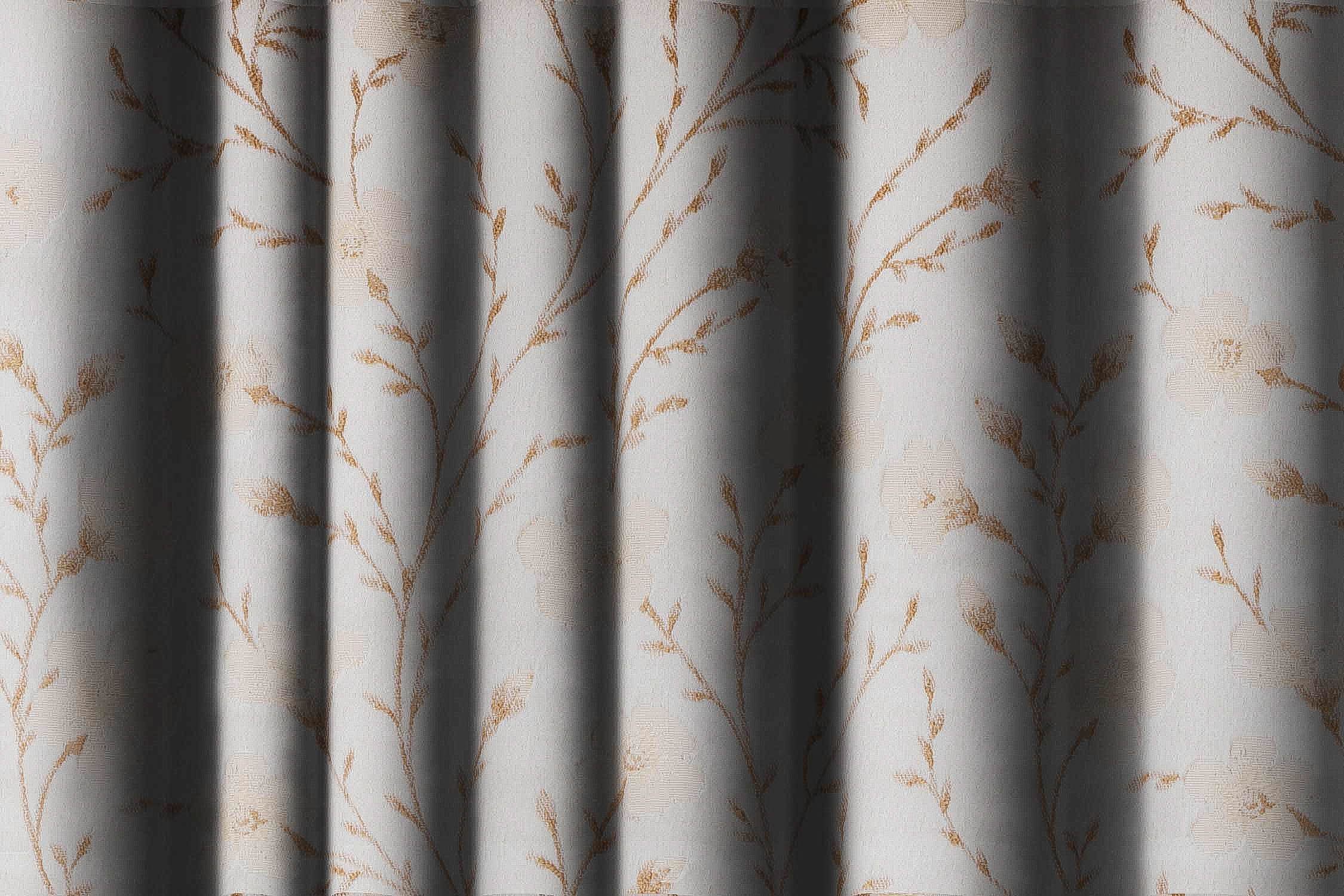 Gold and Beige Floral Print Curtain Fabric
