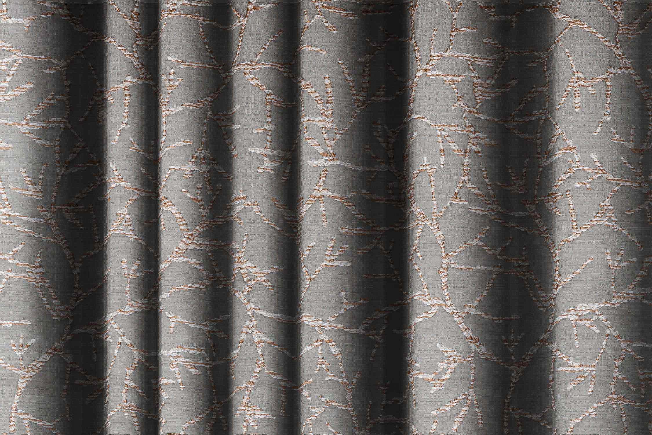 Grey & Gold Root Pattern Abstract Curtain Fabric