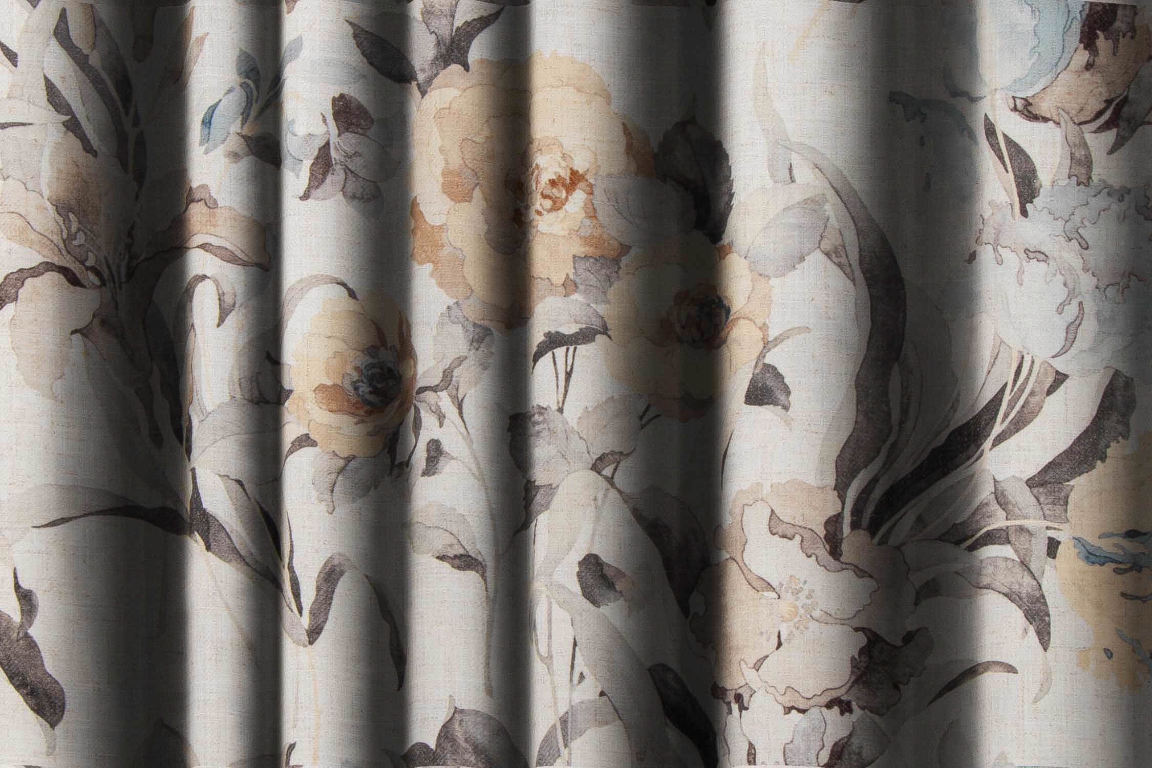Grey Undertone Watercolor Floral Print Curtain Fabric