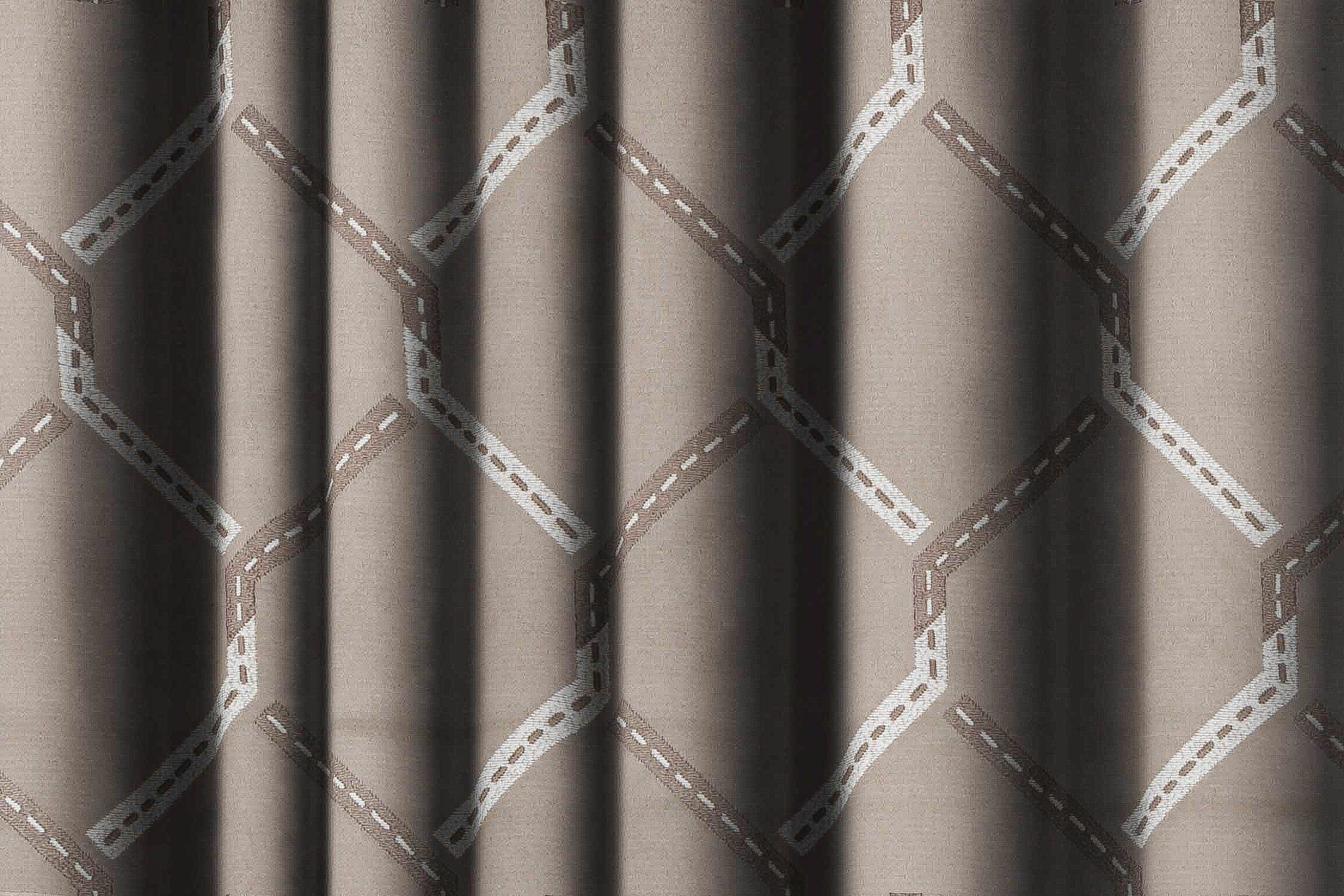 Shades Of Grey Dotted Line Diamond Pattern Abstract Curtain Fabric