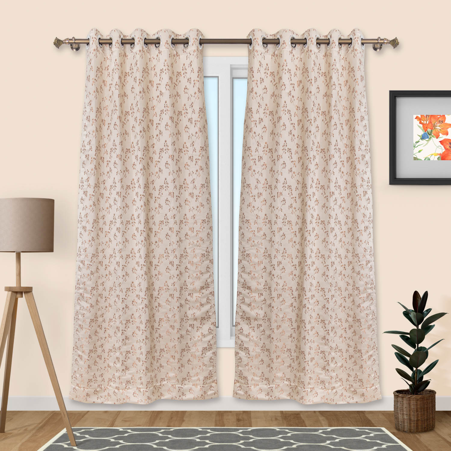 Home / shop / RIO1013 Floral Jacquard Semi Blackout Eyelet Curtain