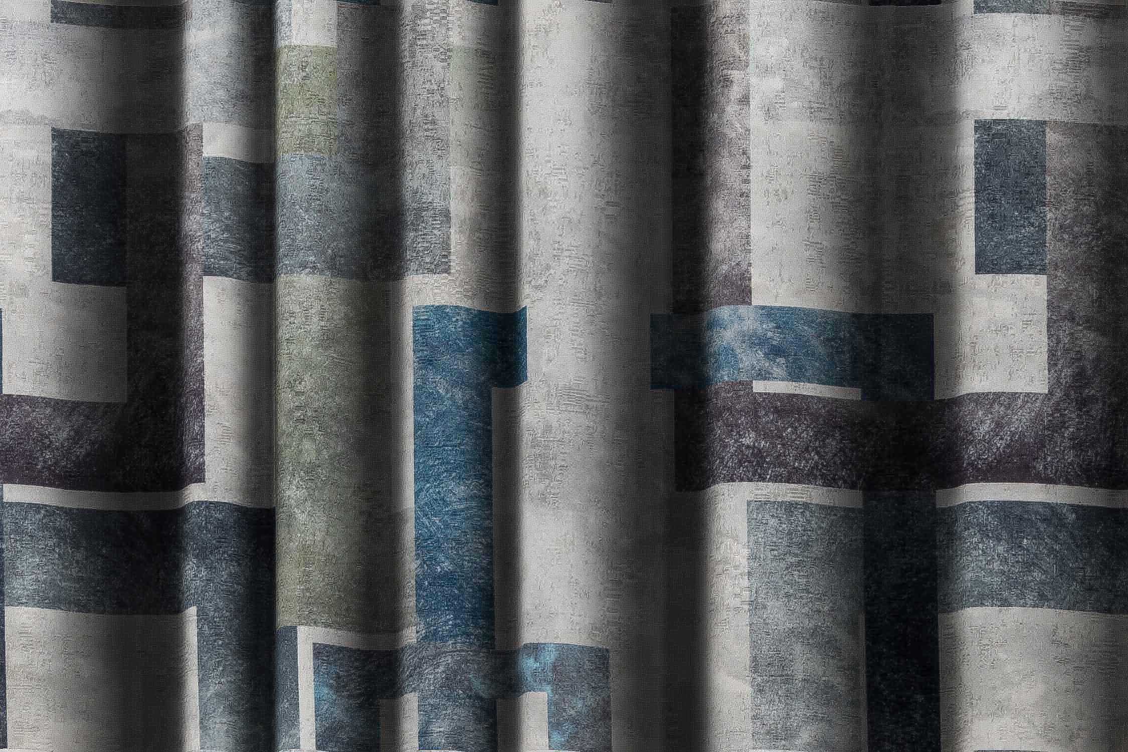 Bright Grey And Blue Rectangular Frame Pattern Abstract Sofa Fabric