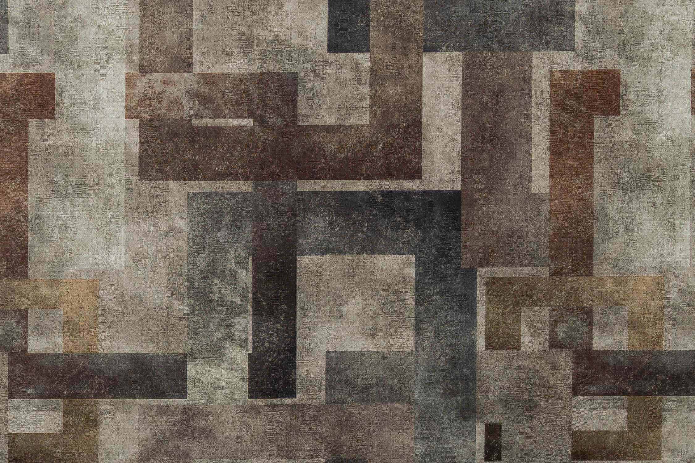Nomad Brown Rectangular Frame Pattern Abstract Sofa Fabric